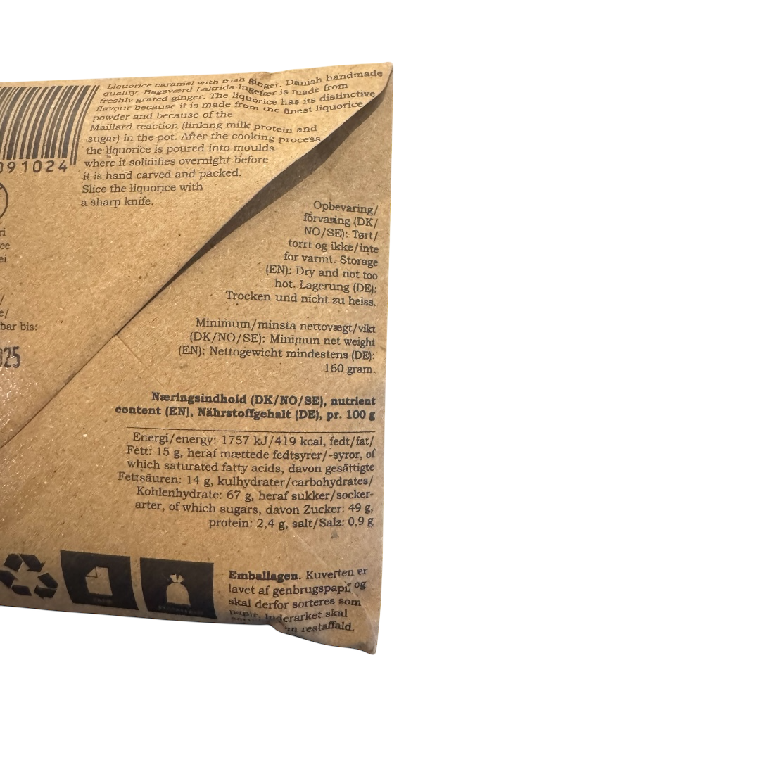 Håndlavet dansk kvalitet. Bagsværd Lakrids Ingefær er fremstillet af frisk, revet ingefær i Bagsværd.