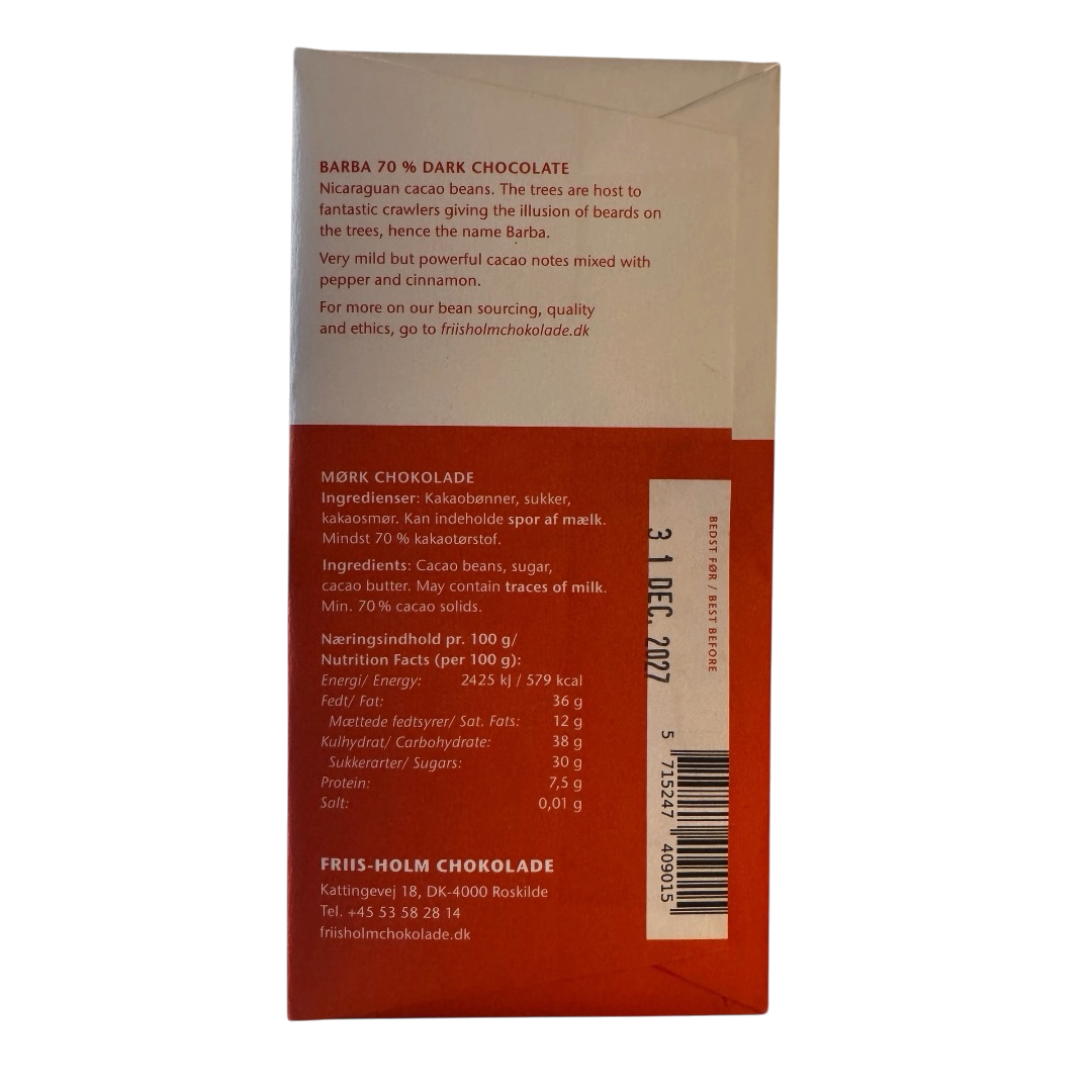 Friis Holm dark chokolade Barba 70% single bean. European Chocolate Awards Silver medal