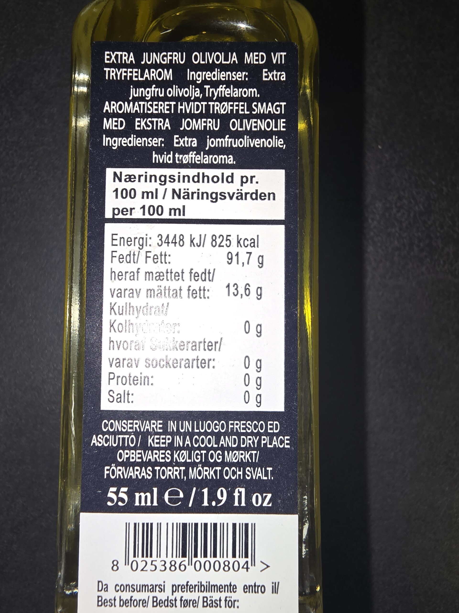 Tilførsel af hvide trøfler giver en intens og unik smag. Olien kan anvendes til pasta, risotto og mange andre italienske retter. Kun et par dråber til kød og fisk, vil løfte retter med umami smag og levere et fantastisk resultat.