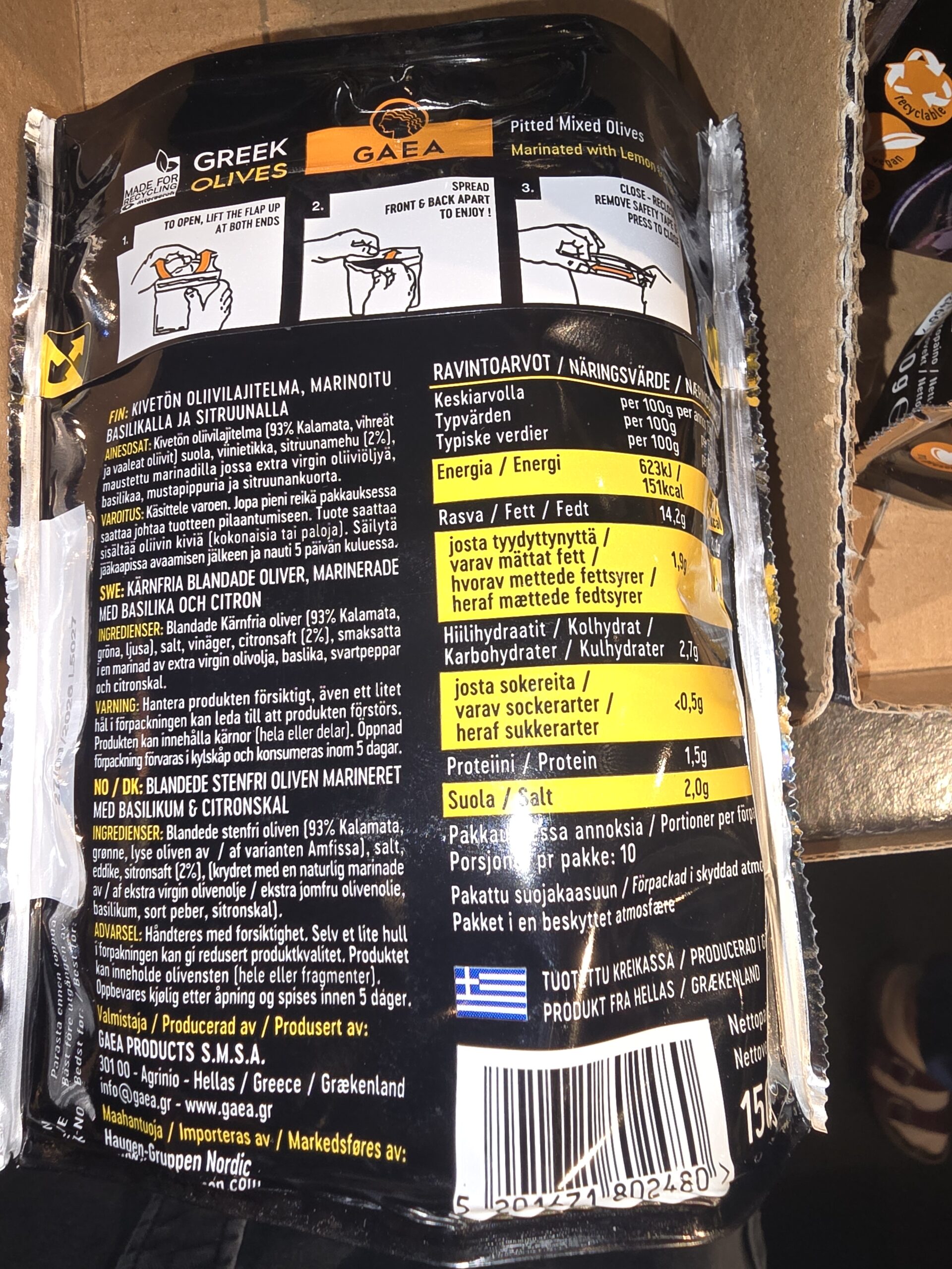 Gaea græske grønne oliven med citron og oregano i pose antal