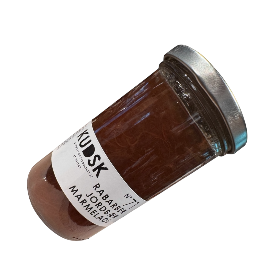 Kudsk marmelade m/ rabarber og jordbær 300 g.