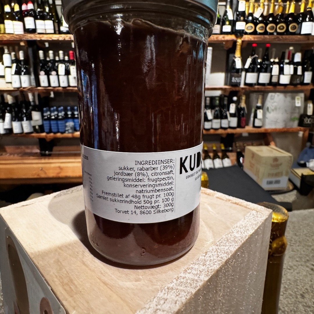Kudsk marmelade m/ rabarber og jordbær 300 g. antal