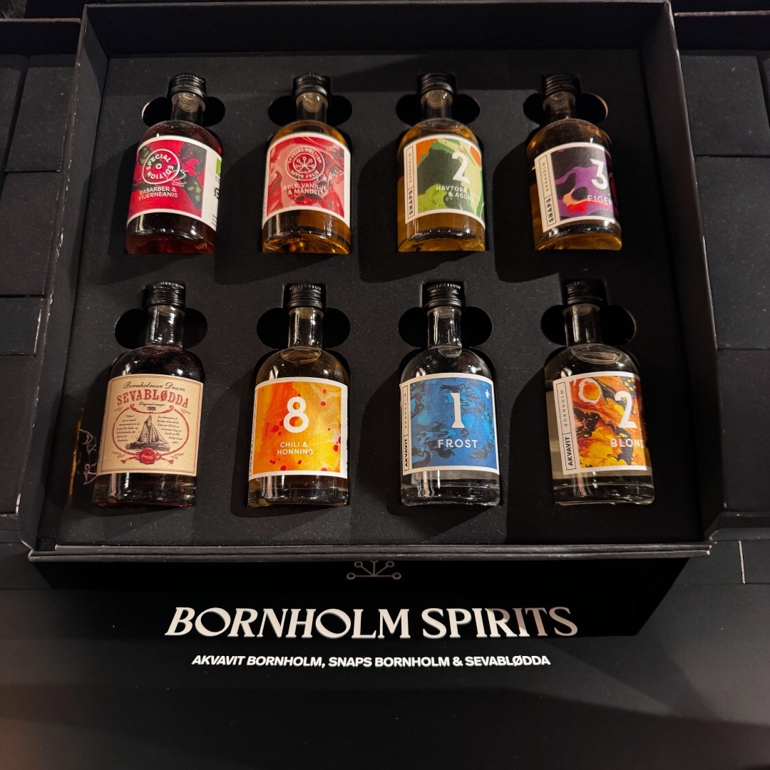 Flot gaveæske fra Bornholm snaps med 8 varianter.