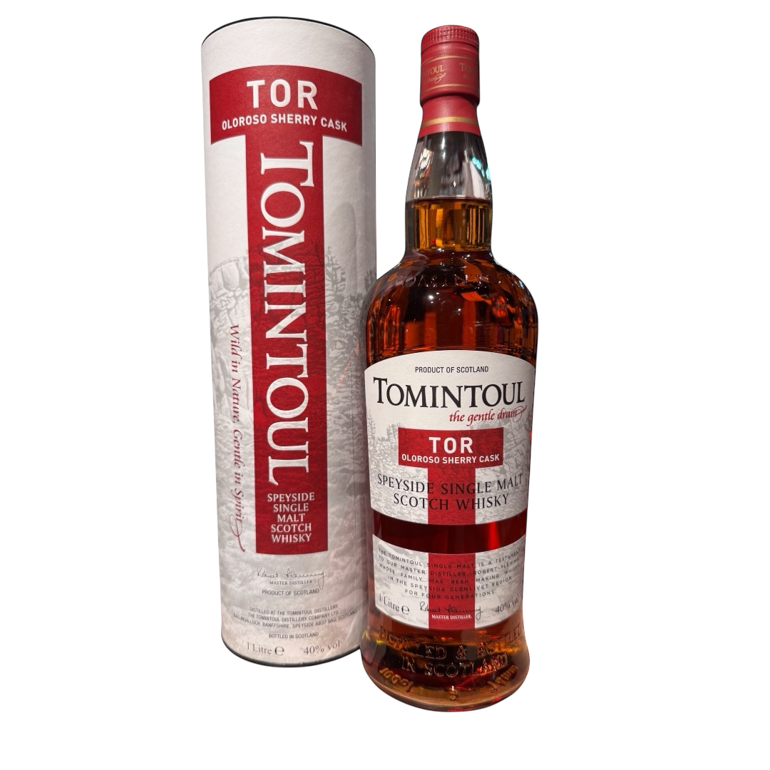 Tomintoul TOR Oloroso Sherry Cask “the Gentle Dram” Speyside single malt 1 liter, i original gaverør